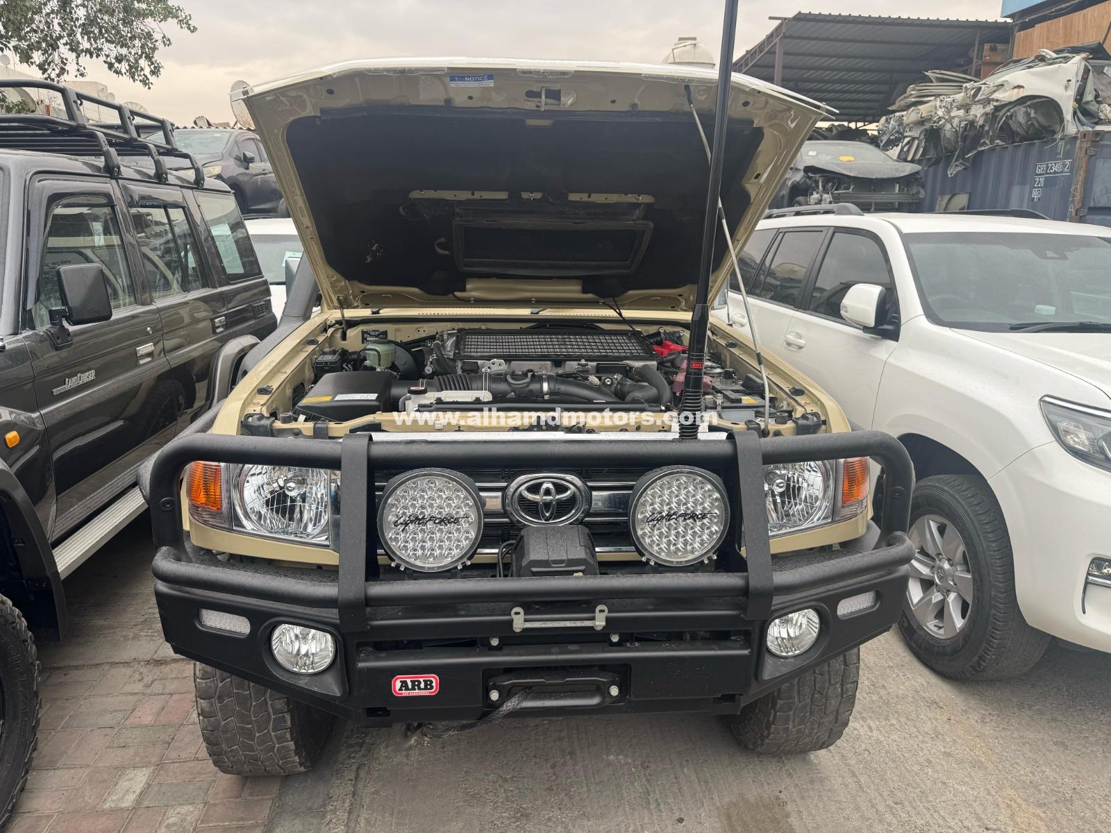 TOYOTA LAND CRUISER HARDTOP USED VEHICLE COLOUR BEIGE MODEL 2021 MANUAL TRANSMISSION DIESEL ENGINE 4.5 LITER 8 CYLIENDER 5 DOOR ALLY RIM AC ABS FOG LIGHT POWER STREEING POWER MIRRIOR FABRIC SEAT TV BACK TYRE AUSTRALIAN SPEC CONTACT +971 50 839 6119 +971 56 542 7141 +971 56 334 5844