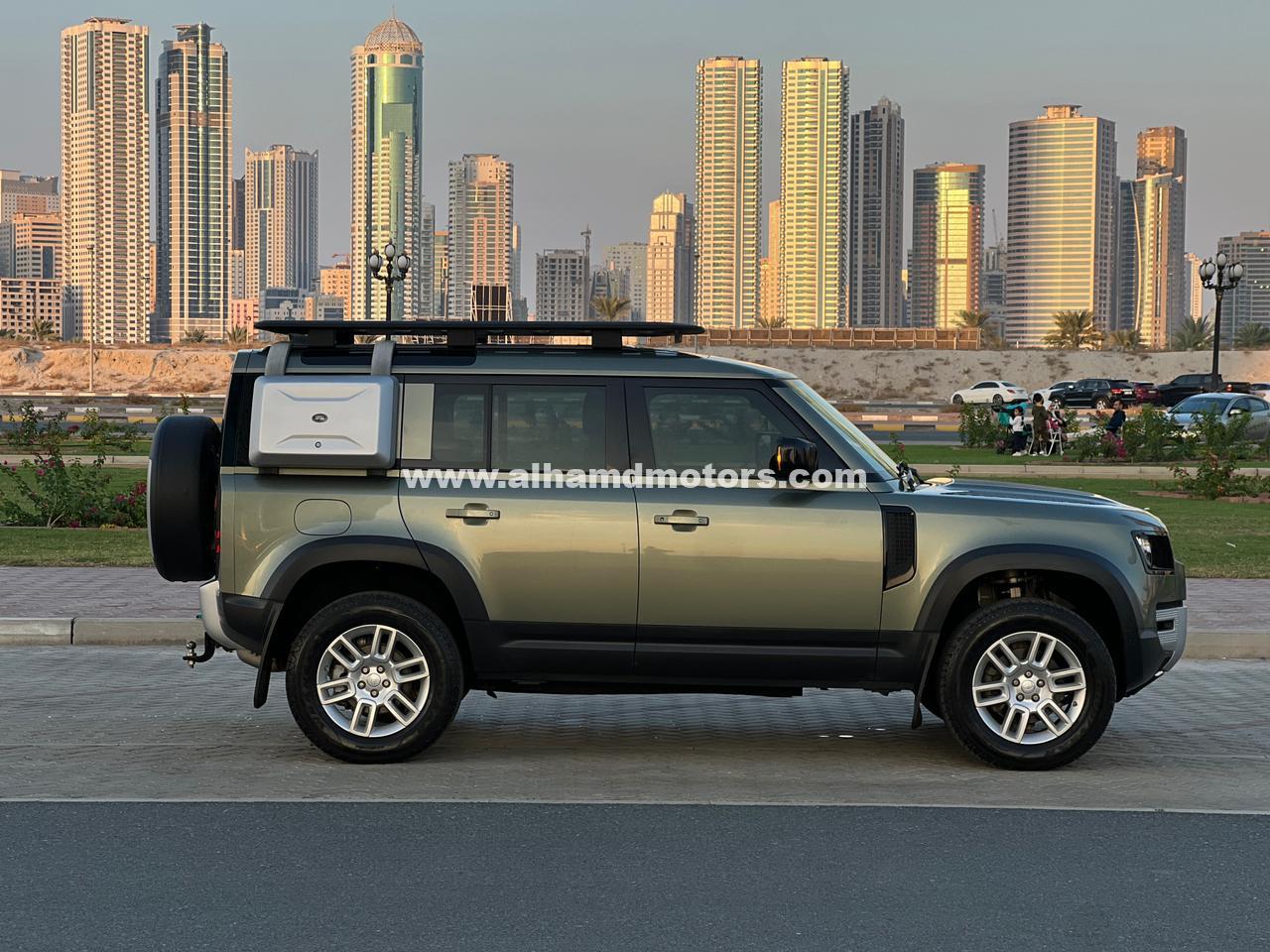 RANGROVER DEFENDER USED VEHICLE COLOUR GREEN MODEL 2020 4WD AT DIESEL ENGINE 6 CYLIENDER 3.0 CC LEATHER SEAT ALLOY WHEEL POWER STREEING POWER WINDOW AC ABS AIR BAG RADIO POWER SEAT RADIO TV BACK TYRE CENTRAL LOCKING JACK SPARE WHEEL BACK CAMERA PUSH START KEYLESS ENTRY TURBO USED TYRE AUSTRALIAN SPEC