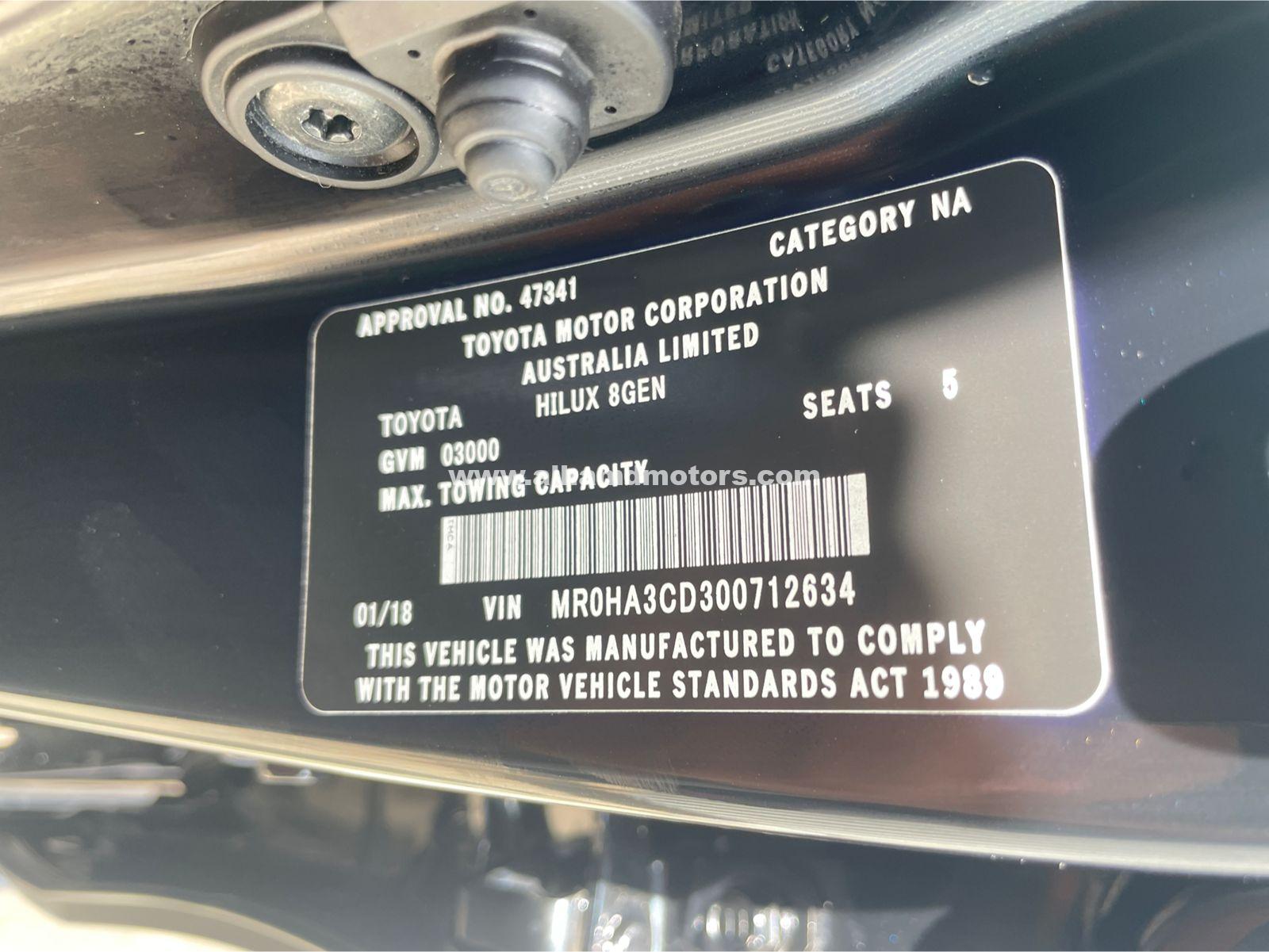 TOYOTA HILUX BLACK 2018 BLACK 2.8 4WD AT DIESEL = RIGHT HAND