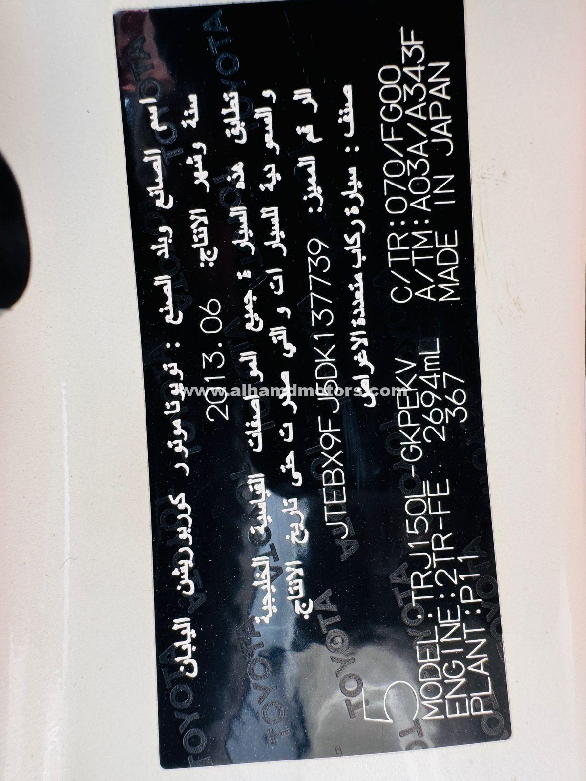 Toyota Land Cruiser Prado TXL ,Year Model 2013 ,Petrol ,2.7 Liter