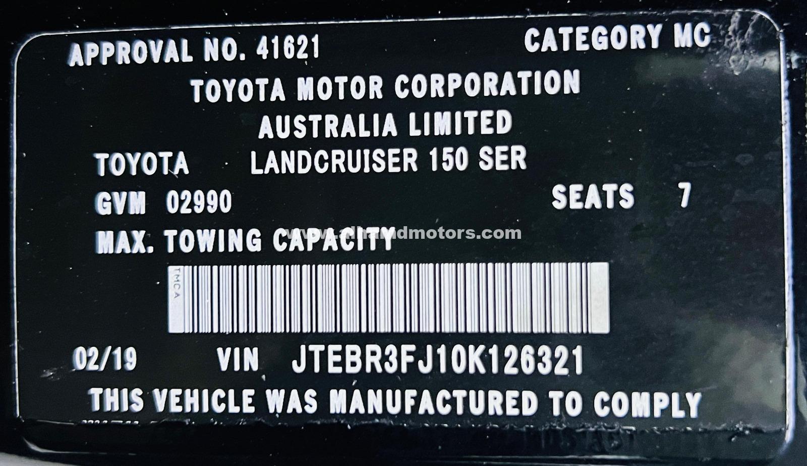 TOYOTA LANDCRUISER PRADO 2019 BLACK 4WD AT DIESEL = RIGHT HAND